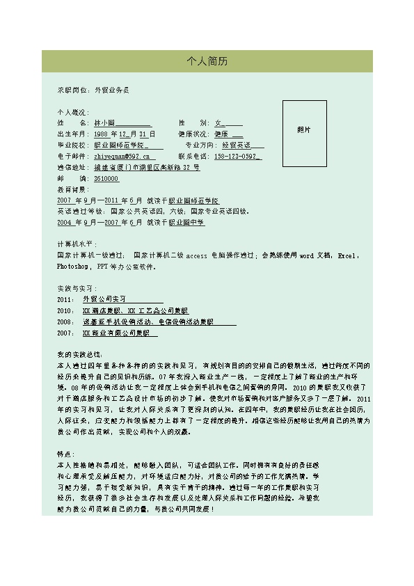 1843_外贸业务员简历模板---较适合于应届生,详细的自我介绍 - 国际贸易简历模板