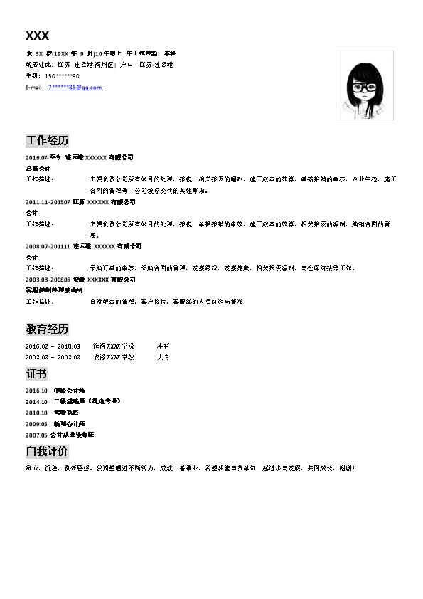 3591_财务会计类高级岗位个人求职简历模板 - 财会出纳简历模板