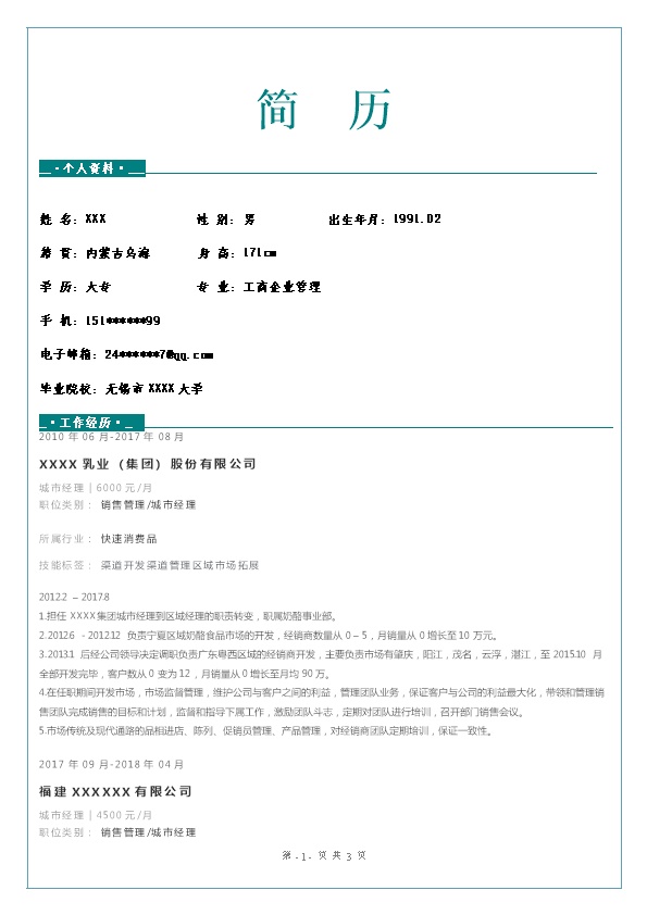 7759_金融投资银行证券信托类岗位求职简历模板 - 投资银行简历模板