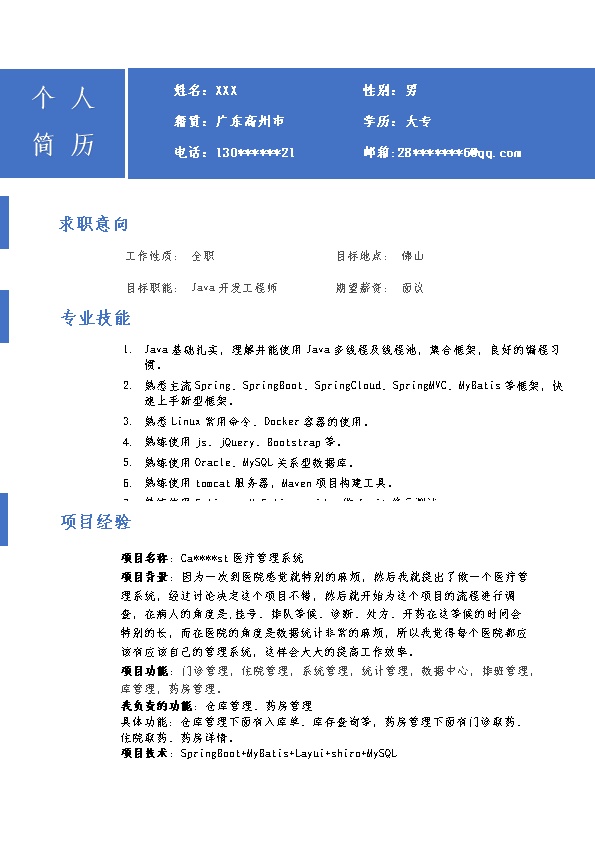 3405_JAVA软件开发工程师类岗位求职简历模板 - 软件开发简历模板
