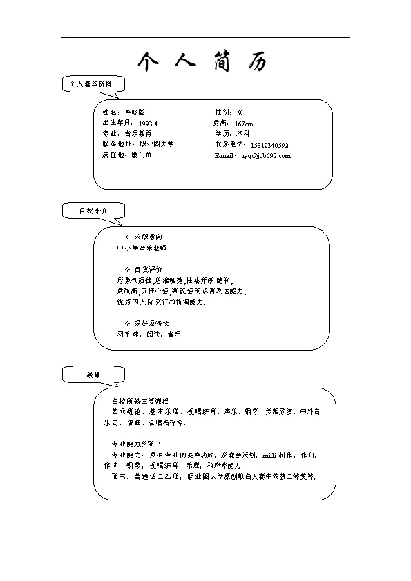 6529_音乐老师求职简历模板 - 音乐创作简历模板