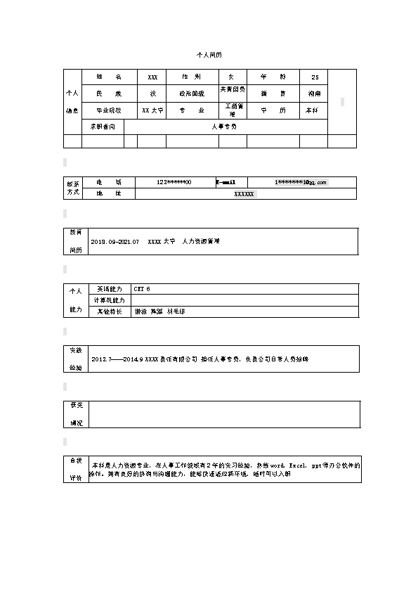 4991_人事人资人力资源助理岗位求职简历模板 - 人力资源简历模板