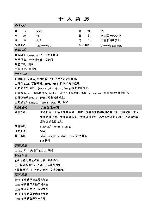 3372_JAVA实习开发工程师类岗位求职简历模板 - 软件开发简历模板