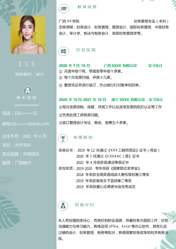 7665_财务会计统计出纳相关岗位求职简历模板 - 电子商务简历模板