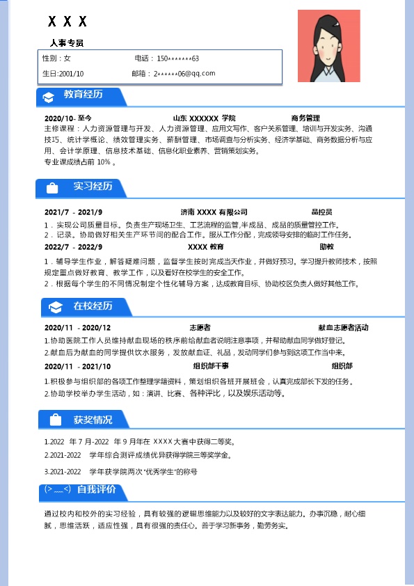 9611_商务管理人资类专业应届生求职简历模板 - 教育培训简历模板