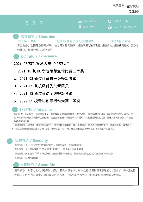 8889_旅游相关类专业应届生求职简历模板 - 咨询顾问简历模板