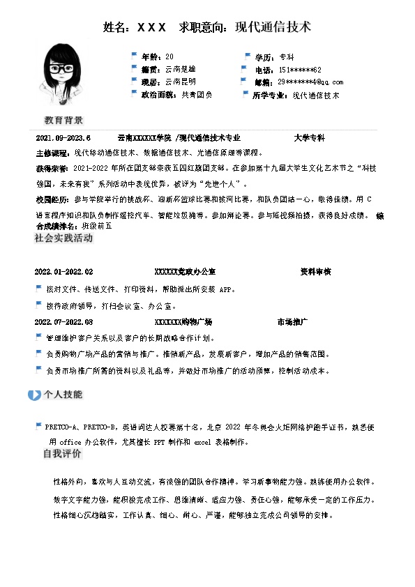 3268_现代通信技术相关专业应届生求职简历模板