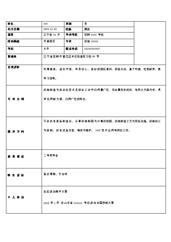 1281_清新叶子背景适用于应届生空白表格简历 - 通用模板简历模板