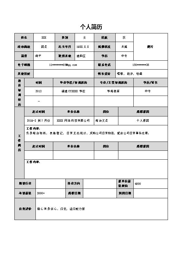 2937_带头像空白黑白表格简历模板 - 软件开发简历模板
