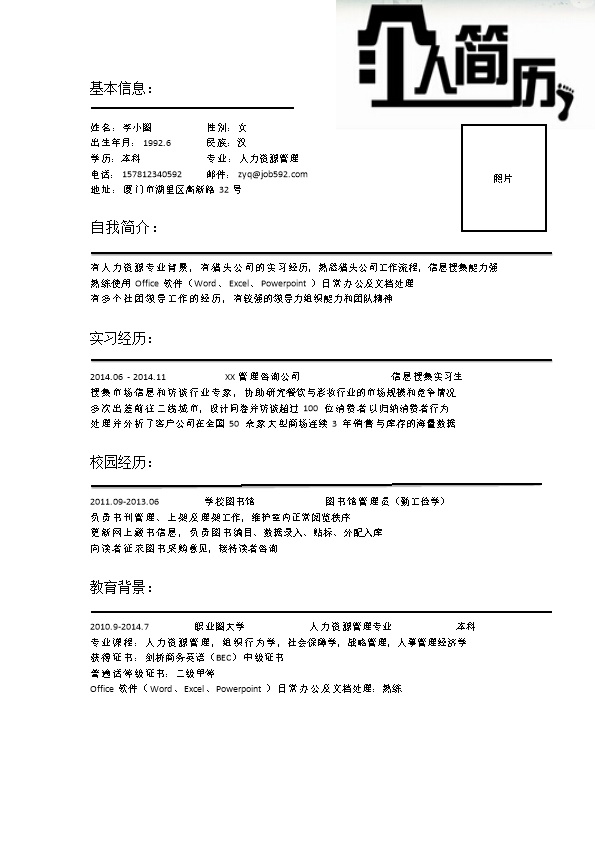 6148_人力资源管理专业简历模板 - 人力资源简历模板