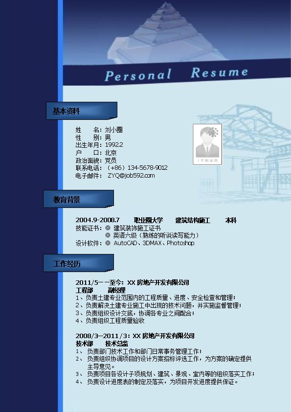 1725_建筑结构施工专业简历模板 - 土木建筑简历模板