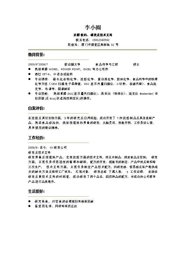 6338_食品研发岗位应聘简历模板 - 生物技术简历模板