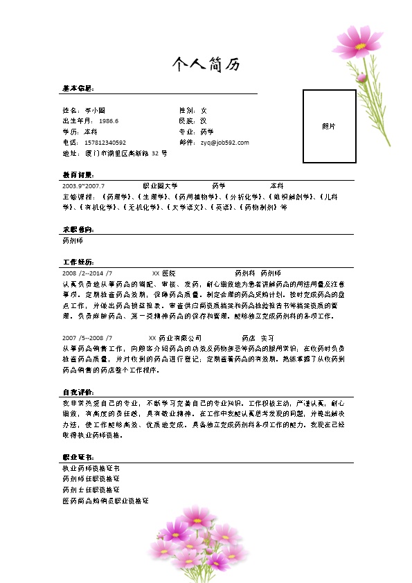 5226_药剂师应聘简历模板 - 制药工程简历模板