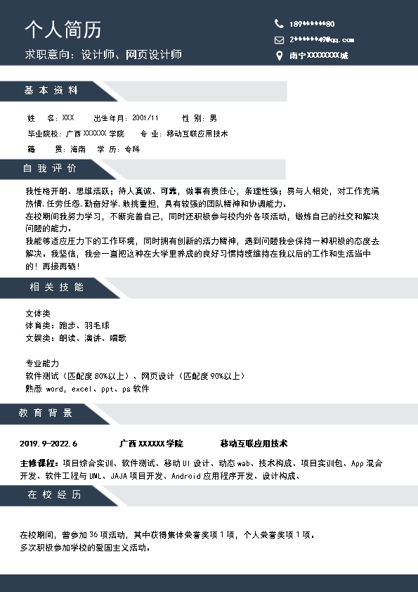 5005_信息管理及信息系统相关专业应届生求职简历模板