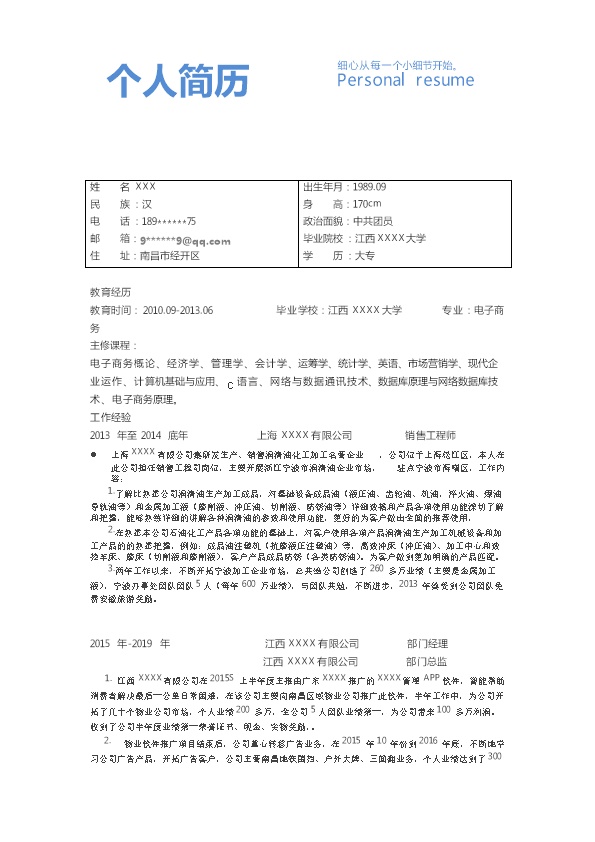 6537_销售业务市场拓展类岗位求职简历模板 - 市场营销简历模板